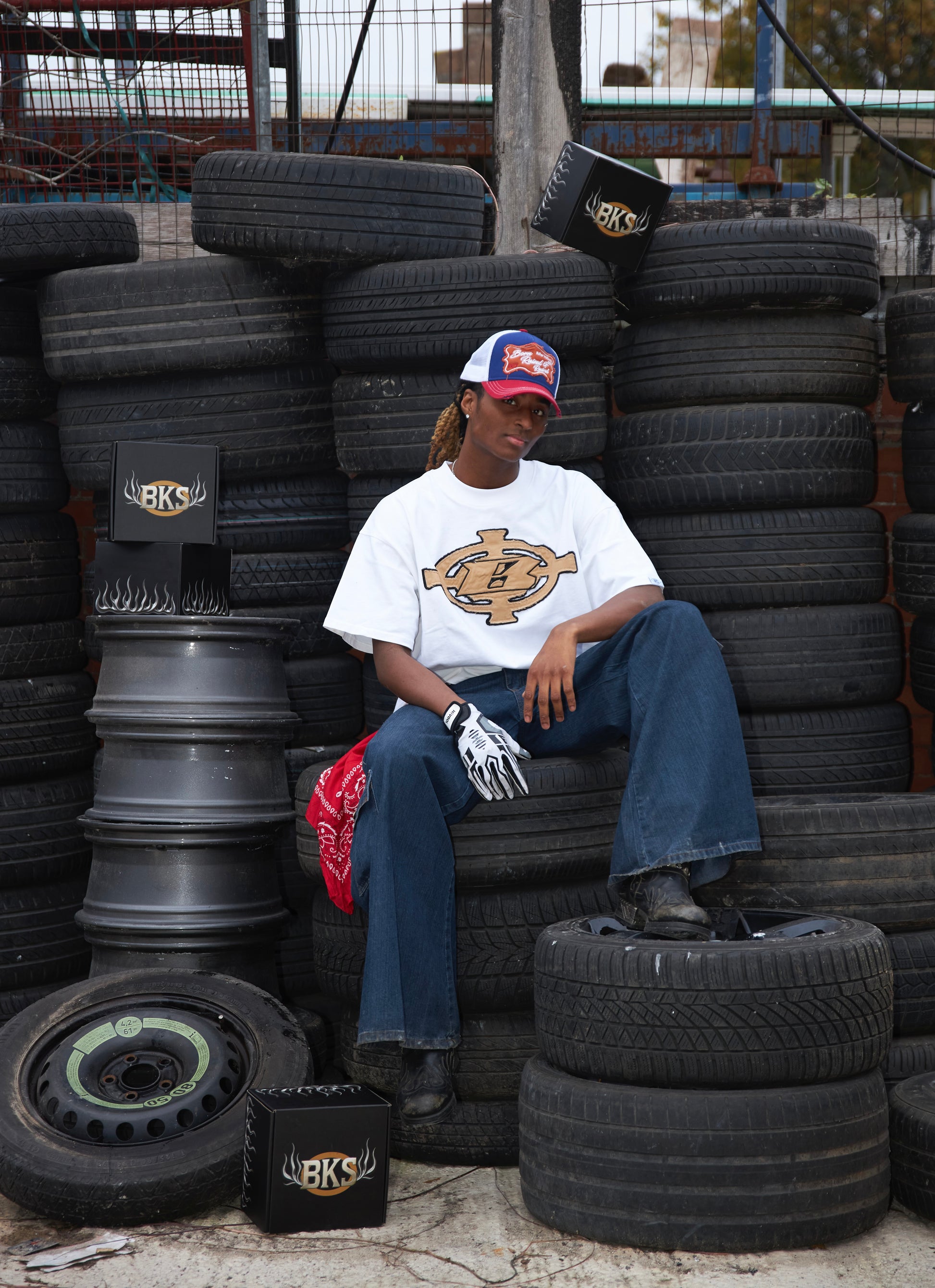 The BLOCK RUNNER TEE by Born Killer Inc redefines street essentials with bold simplicity. Crafted from heavyweight 310gsm cotton for a premium feel and natural warmth, this cropped, boxy silhouette brings structure and comfort with every wear. Finished in clean white with a signature brown patch embroidery, it's built for those who move with intent — sharp, fearless, and made to embody the Born Killer mindset.